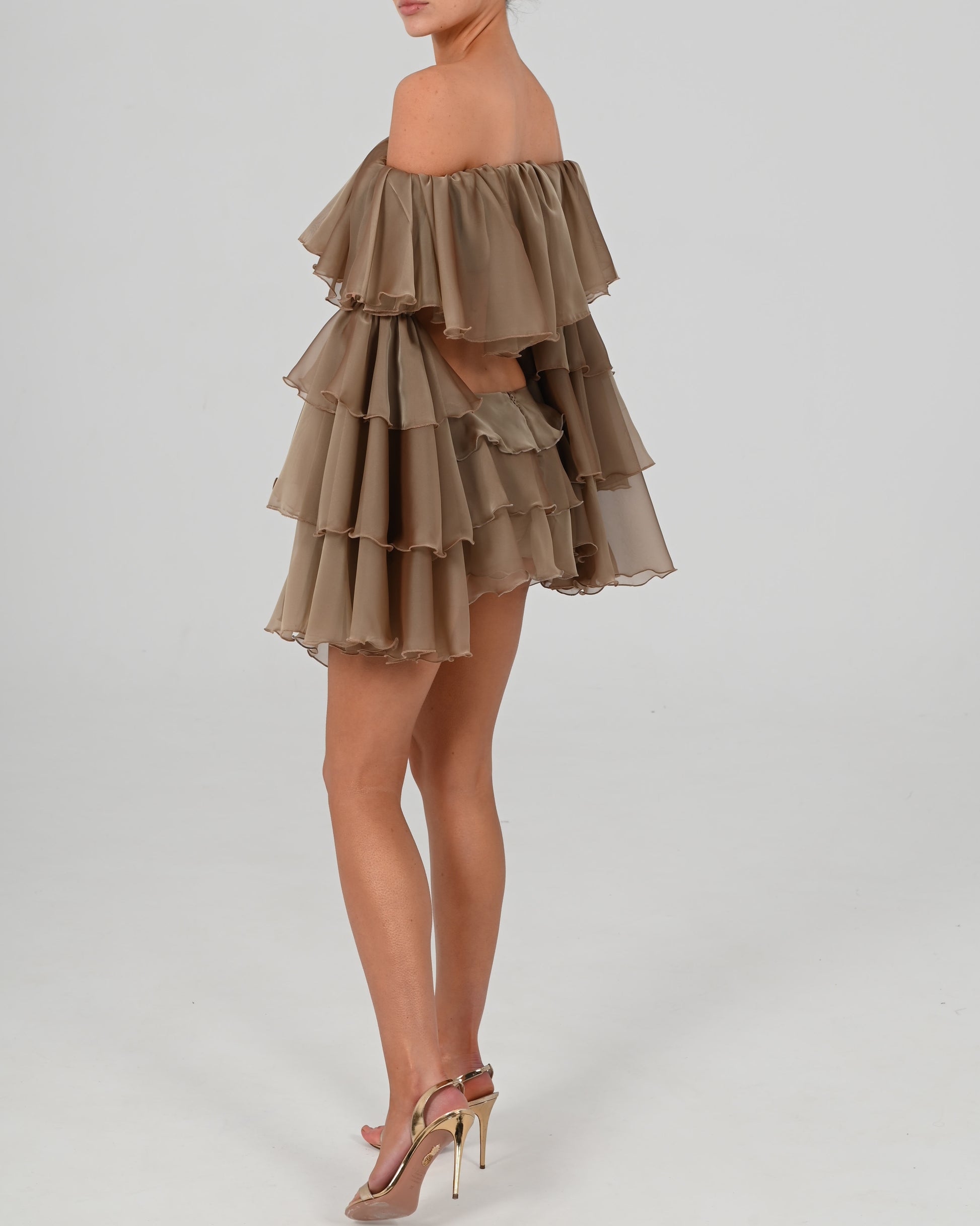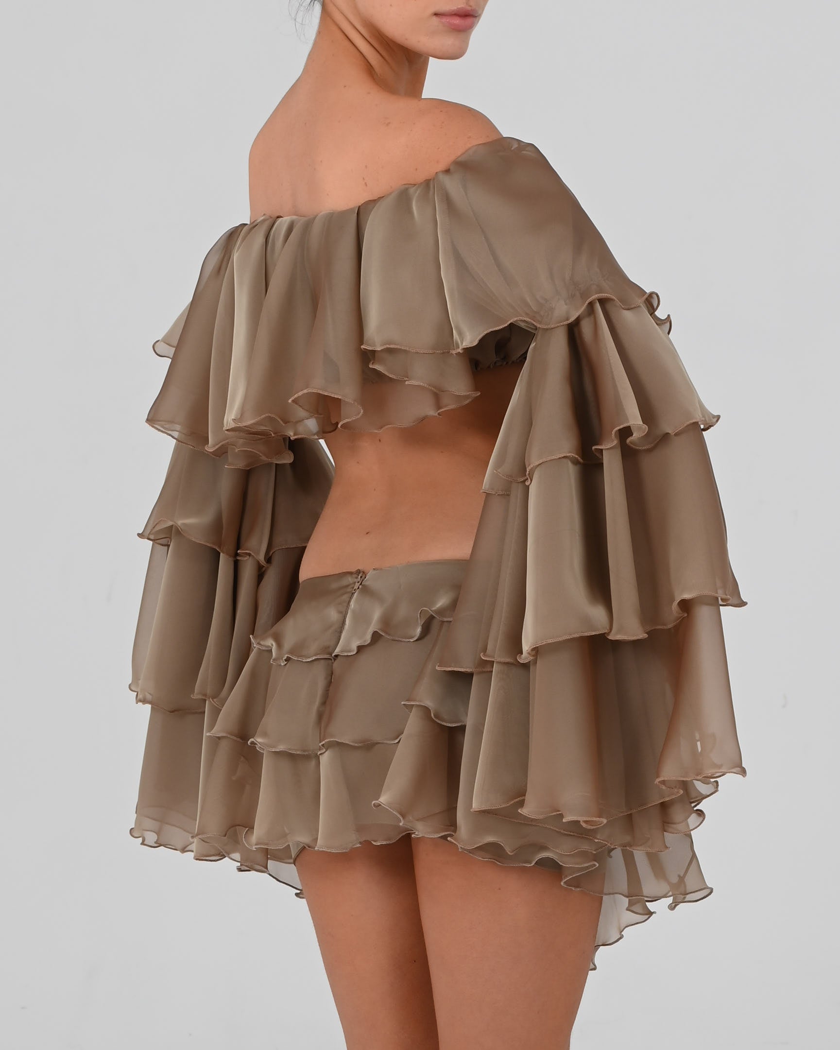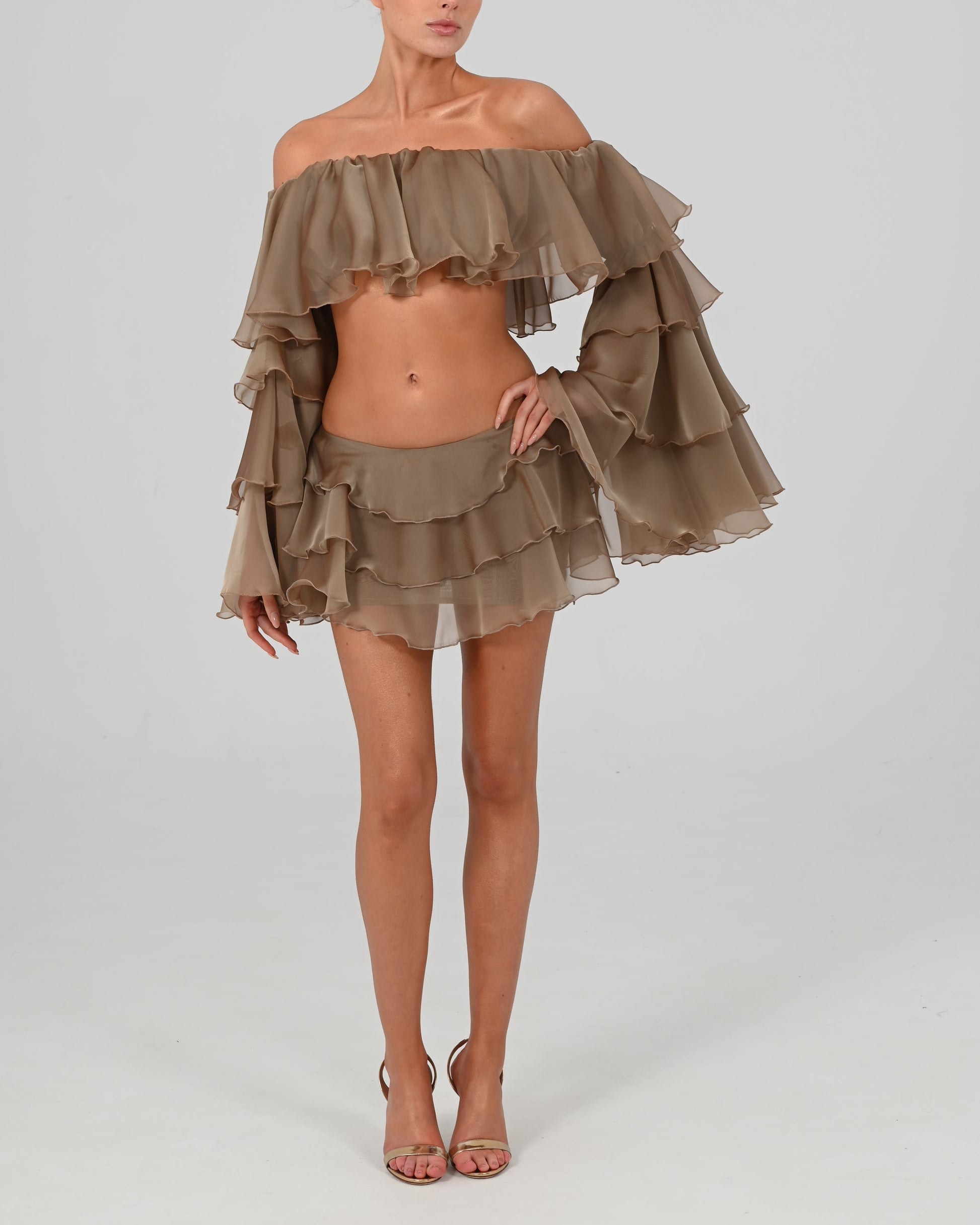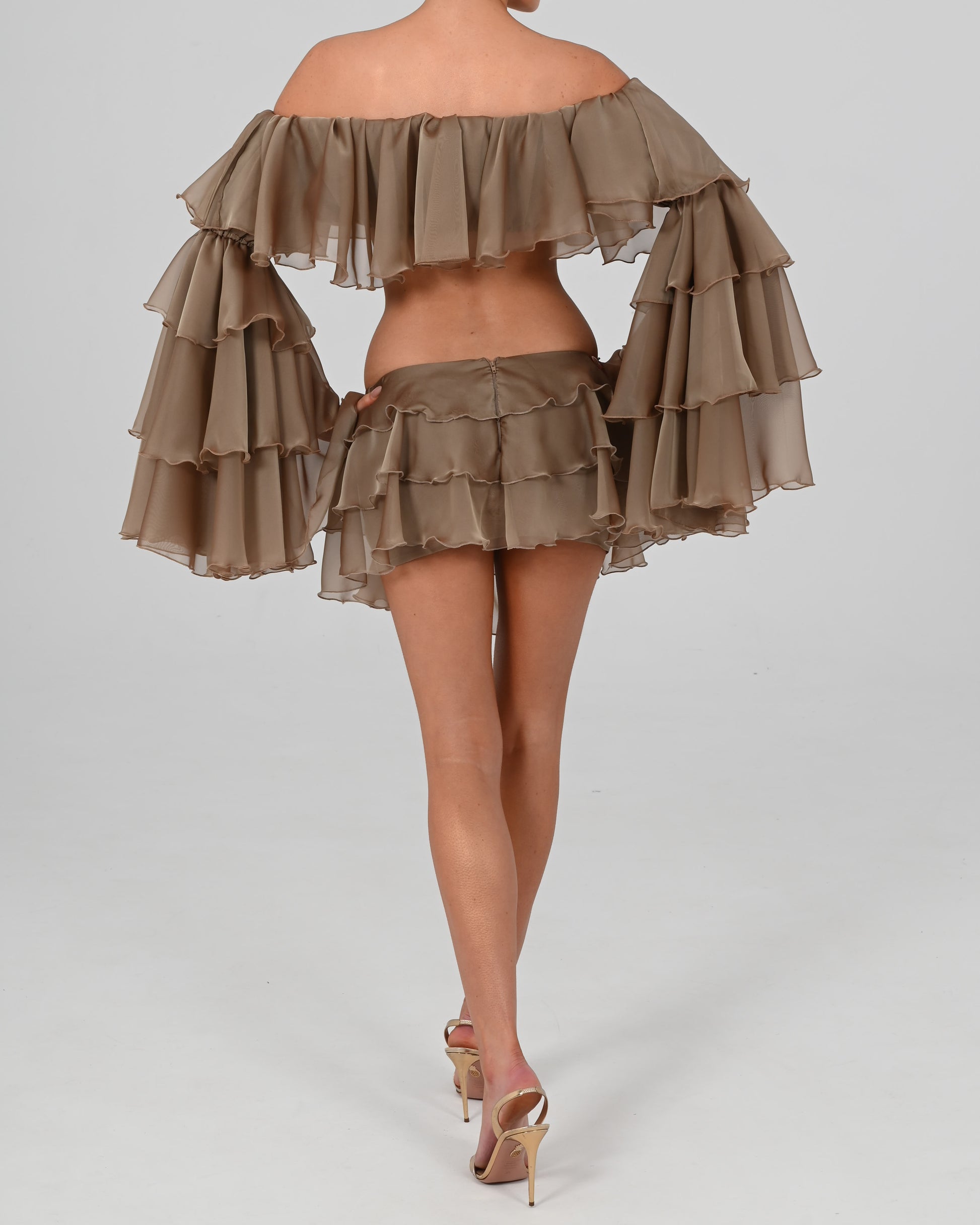 Low Waist Layered Chiffon Mini Skirt with Frill Detail