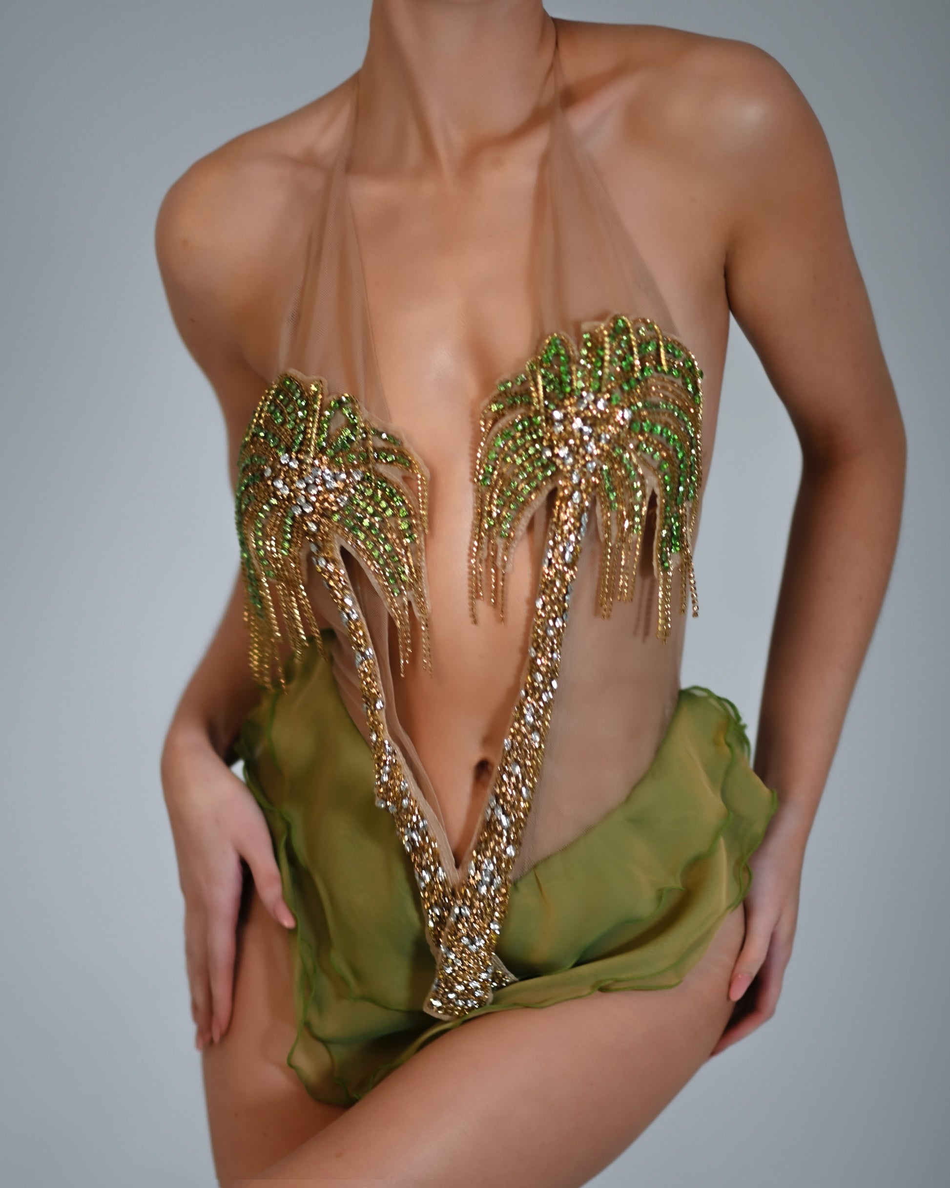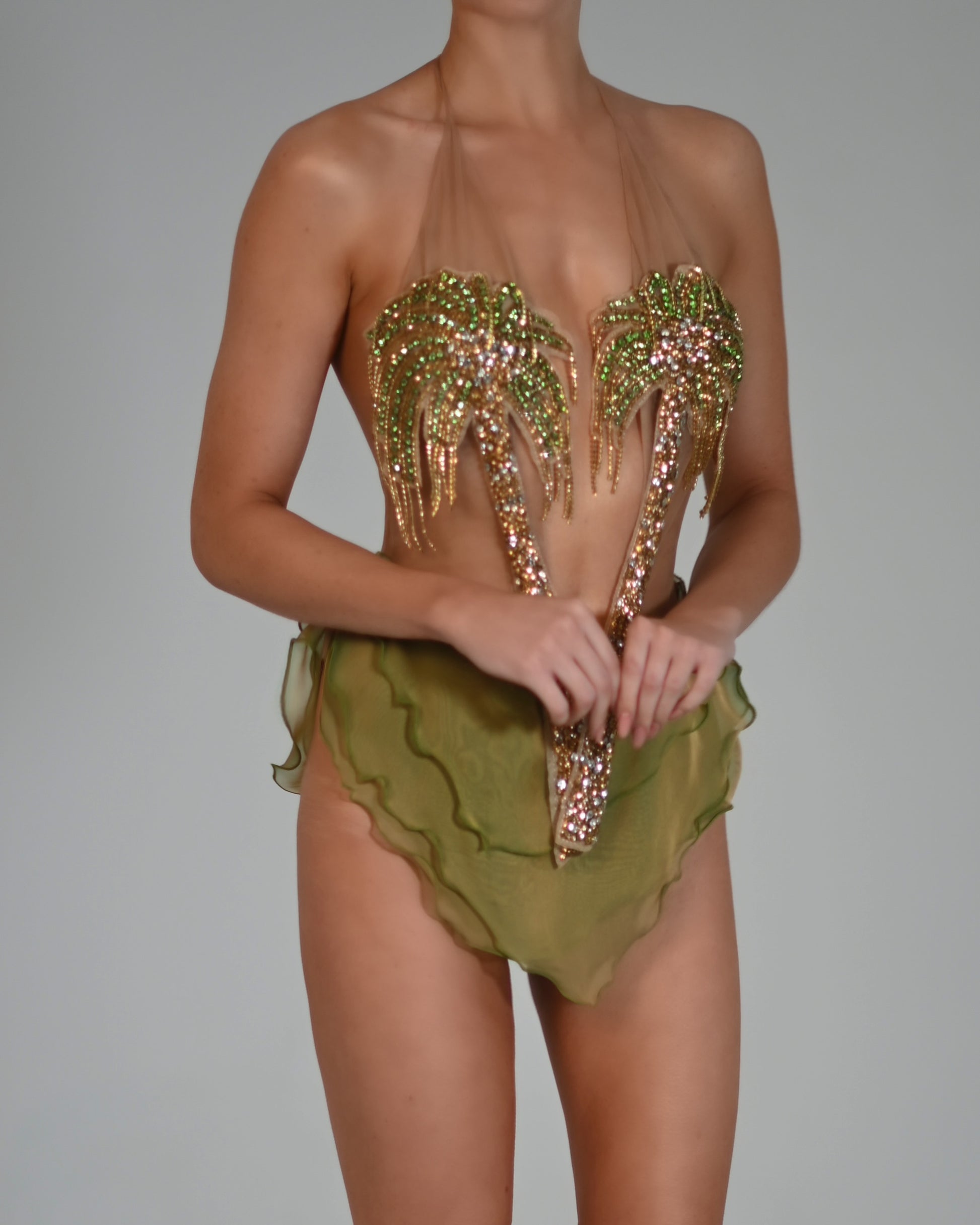 A tulle & chiffon embellished Palm tree romper